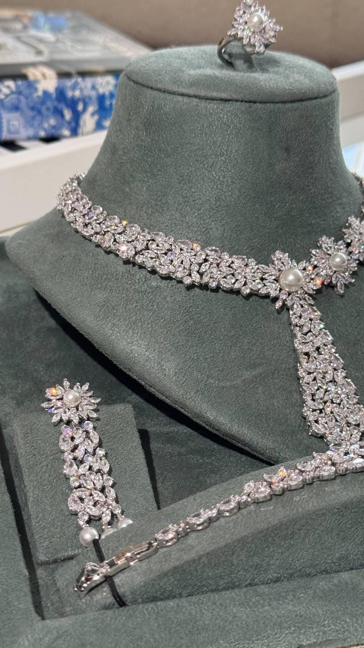 Our jewelry is plated with premium rhodium, ensuring long-lasting shine and resistance to water, sweat, and perfume.