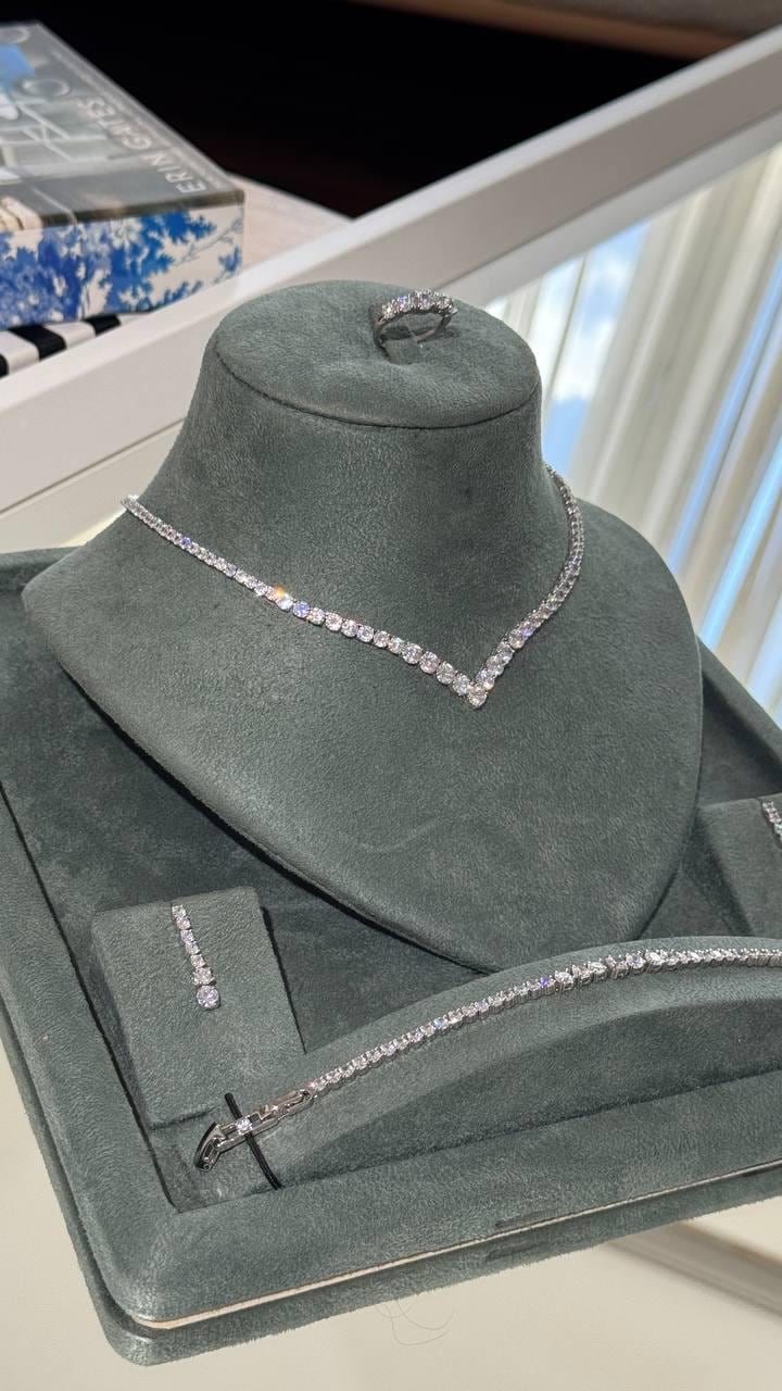 Our jewelry is plated with premium rhodium, ensuring long-lasting shine and resistance to water, sweat, and perfume.