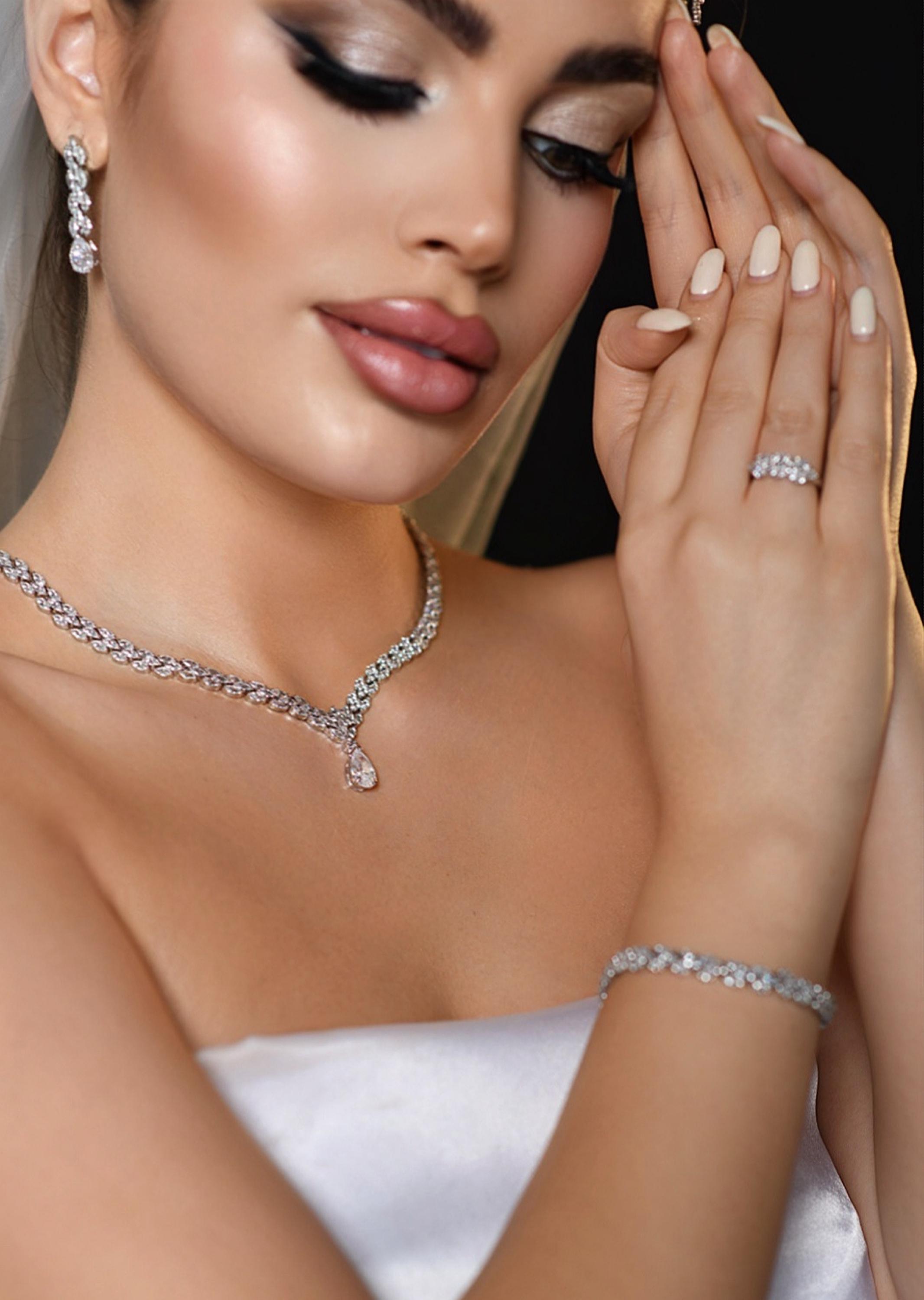 Our jewelry is plated with premium rhodium, ensuring long-lasting shine and resistance to water, sweat, and perfume.