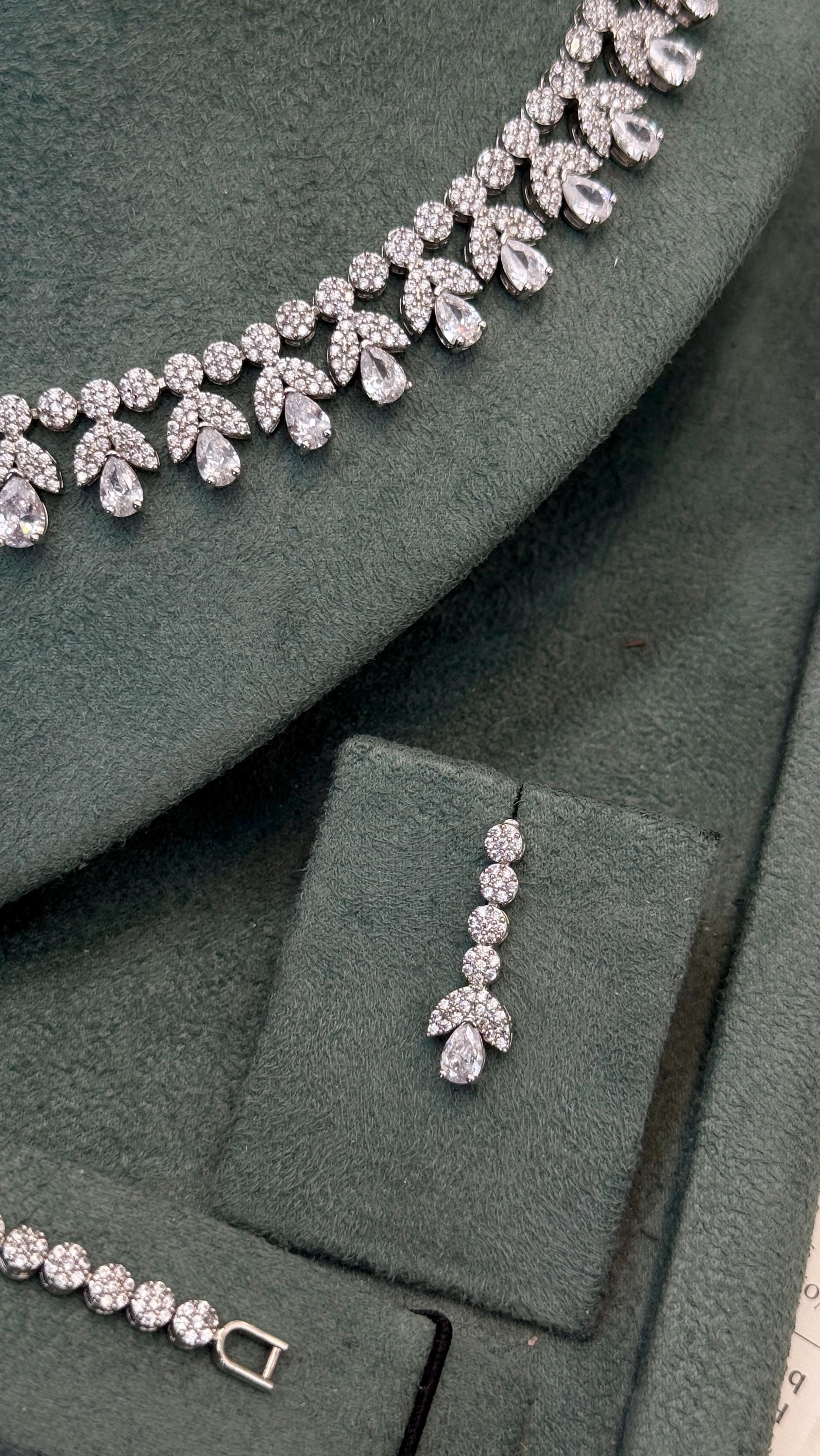 Handcrafted and plated with premium rhodium, this set is designed for long-lasting shine. Each cubic zirconia stone is precision-cut to mimic the brilliance of real diamonds.