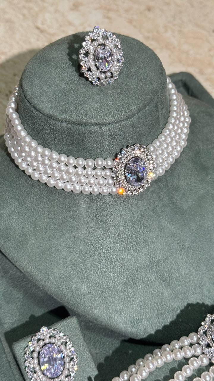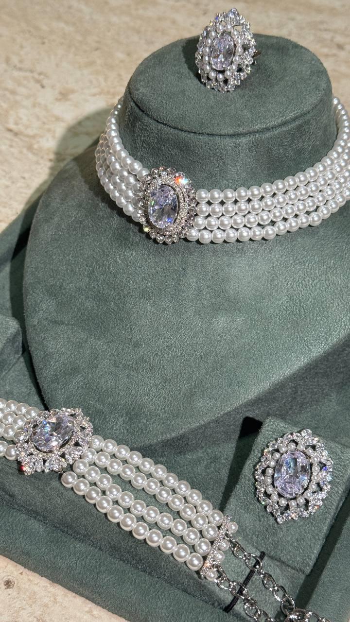 Luxury Pearl and Zircon Choker Jewelry Set – Elegant Bridal & Evening Wear