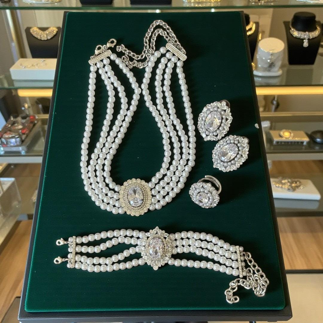 This set isn’t limited to weddings — it’s perfect for all occasions, from elegant evenings, special dinners, parties, engagements, or anniversaries. With its classic pearl design and brilliant zircon centerpiece, it’s a must-have for women who appreciate grace and luxury at an accessible price.