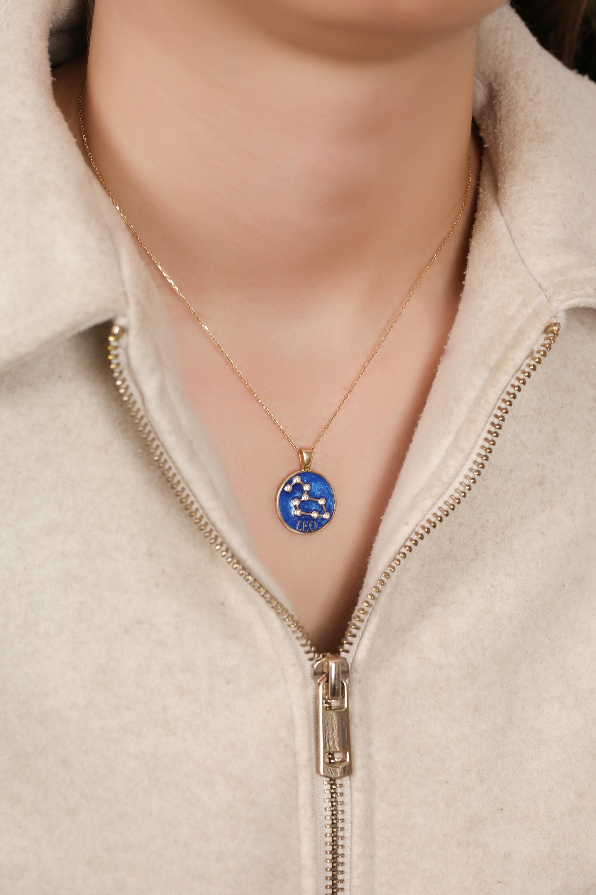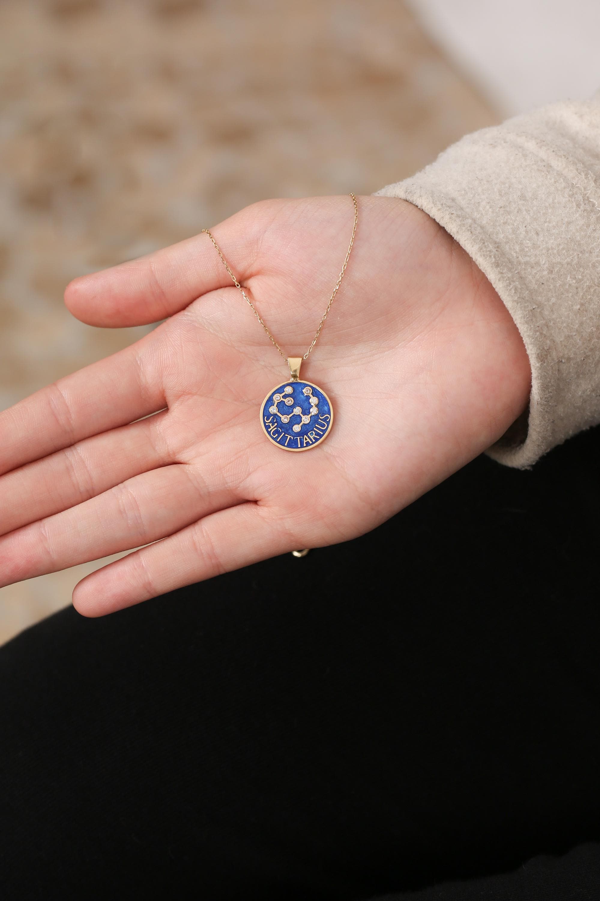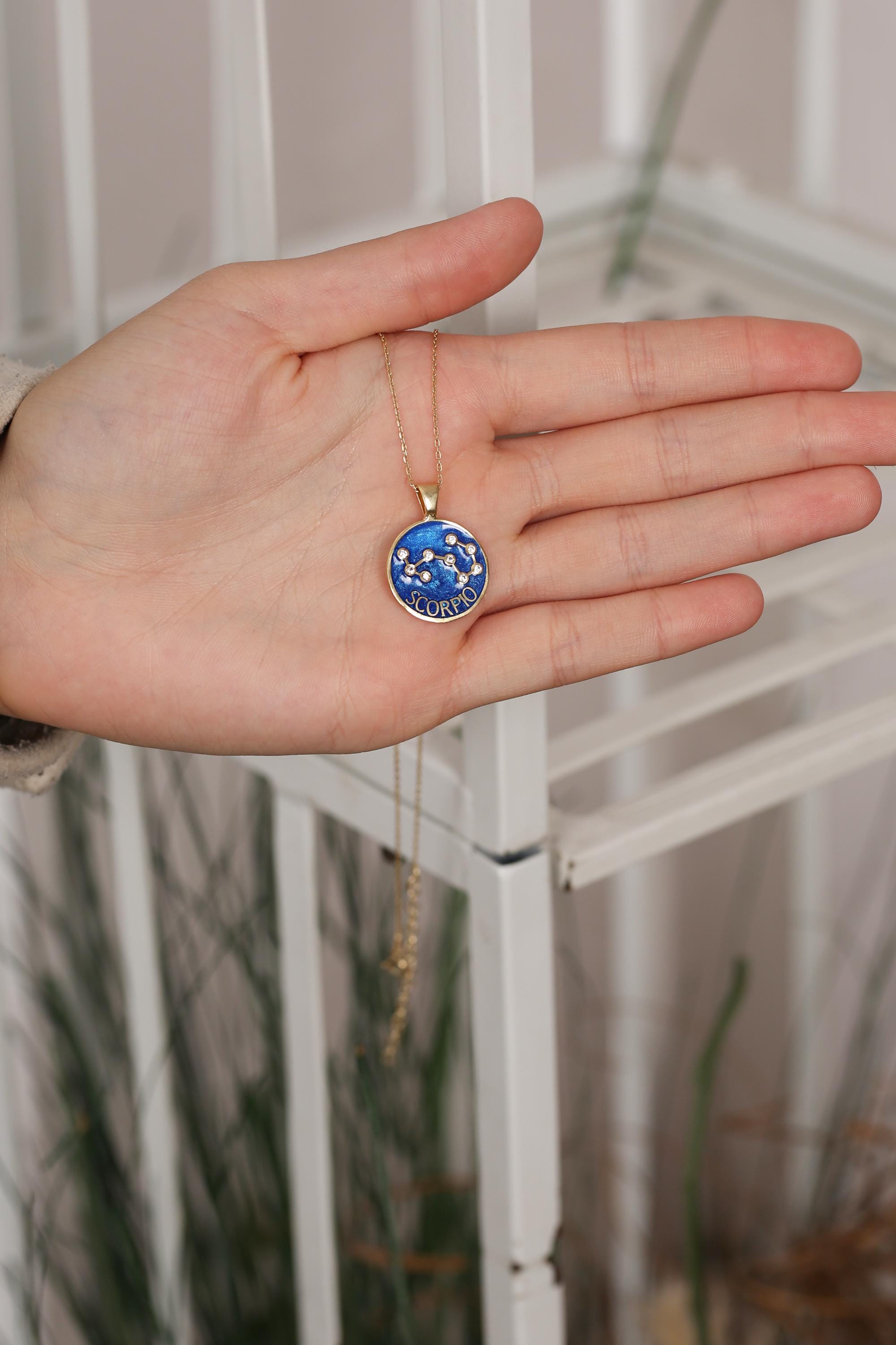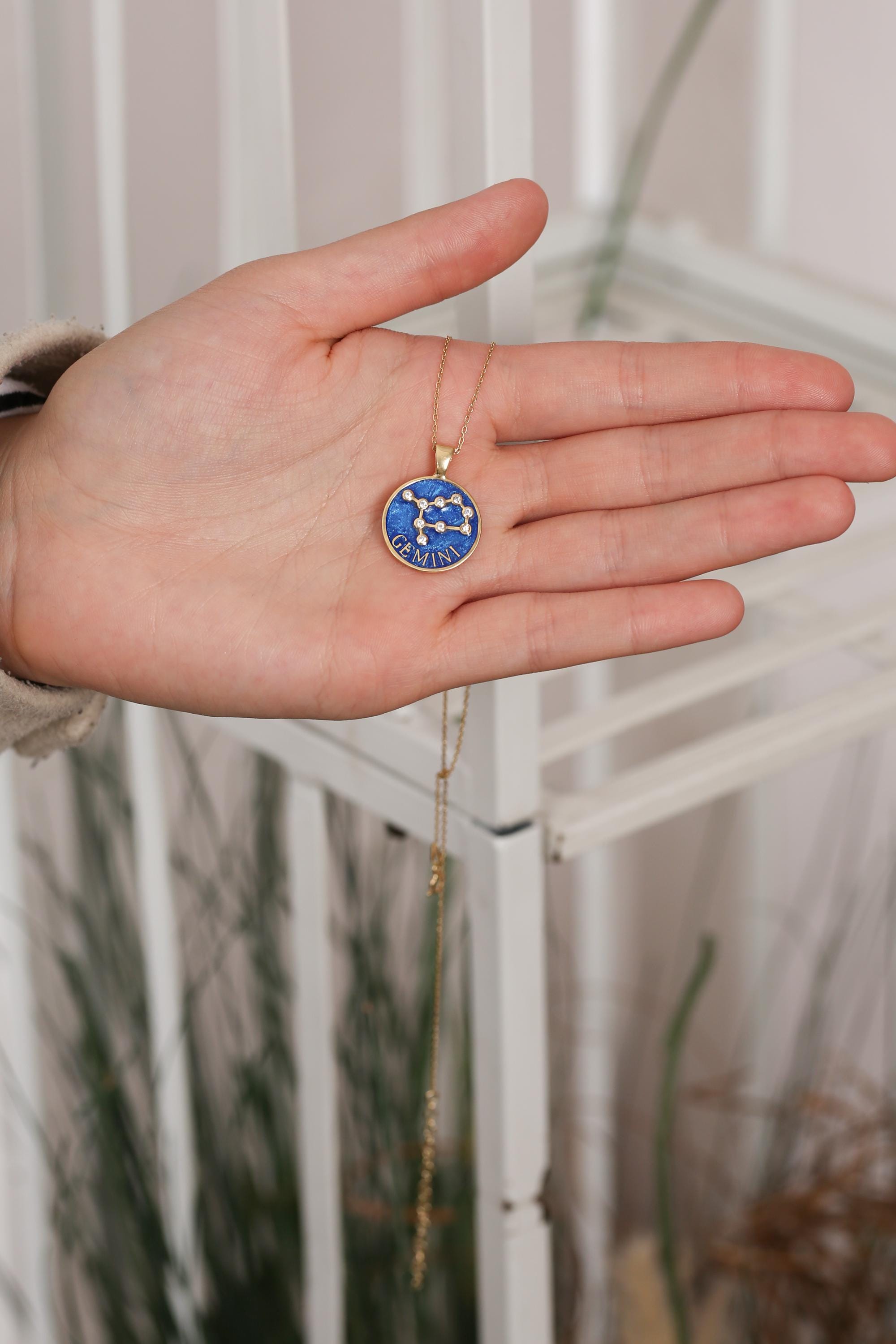 Each pendant is meticulously handcrafted with blue enamel and radiant gold plating, showcasing your unique horoscope sign through delicate, sparkling detail.