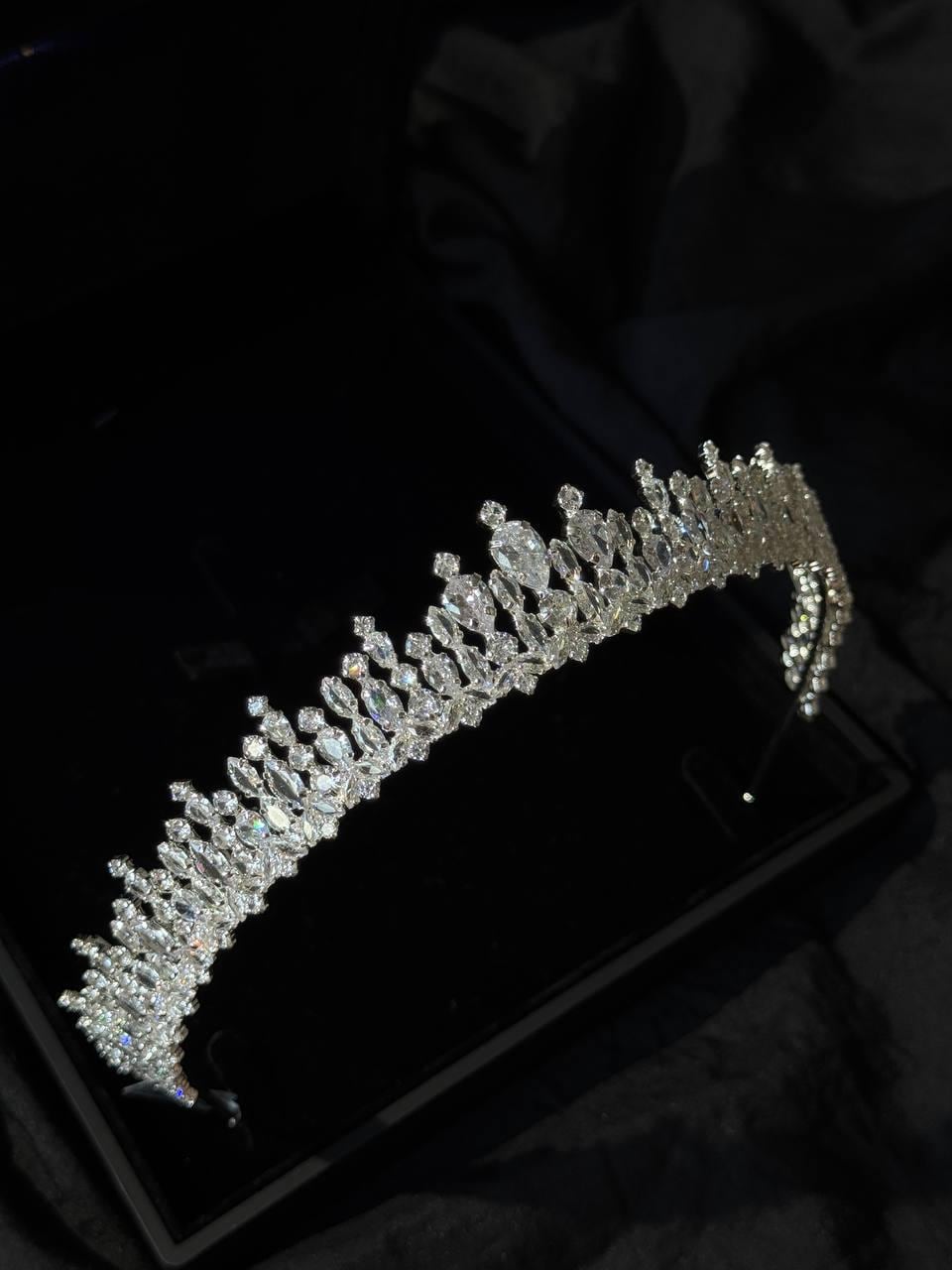 Handmade Silver Zircon Bridal Tiara – Elegant Wedding Headpiece