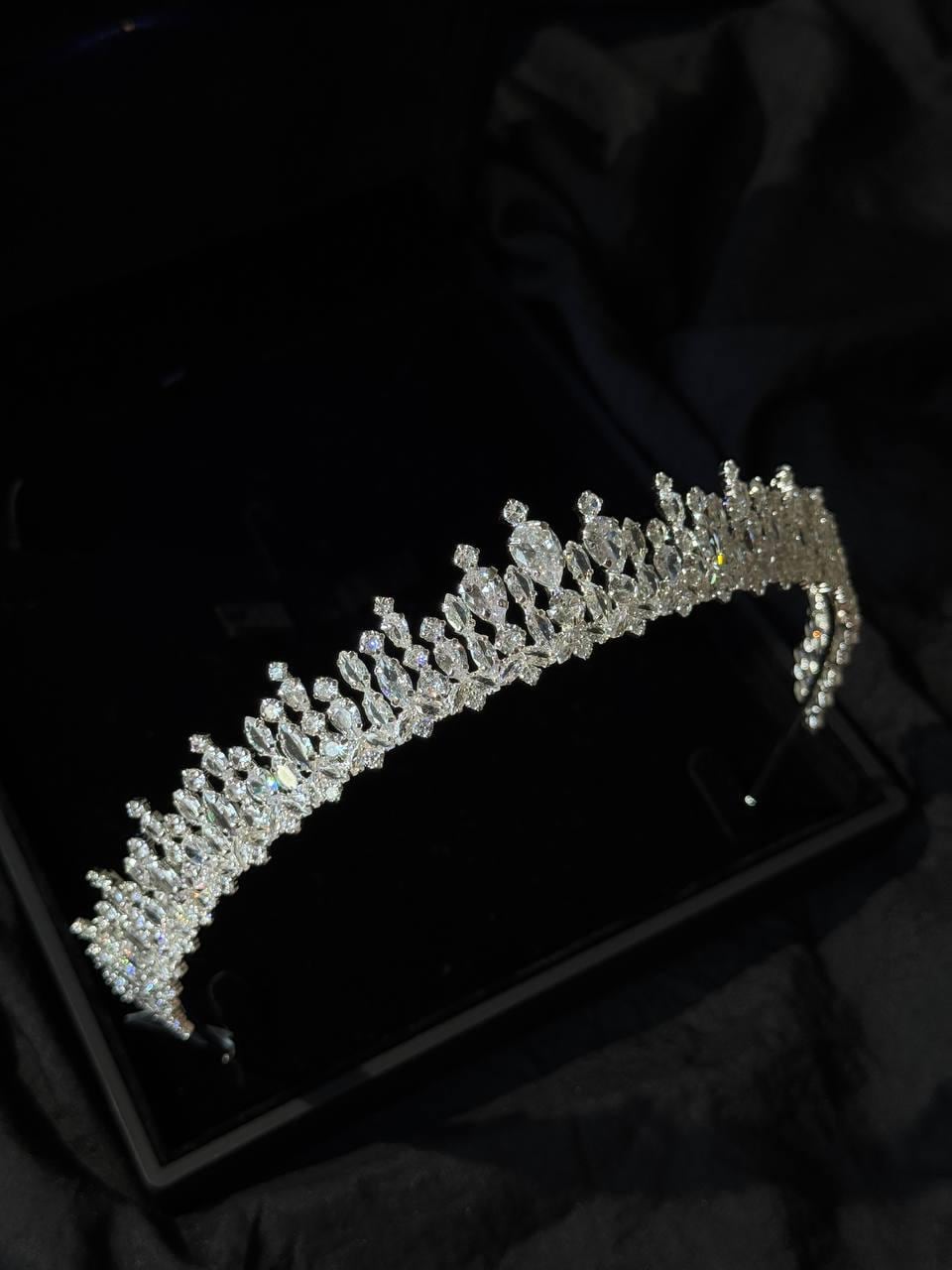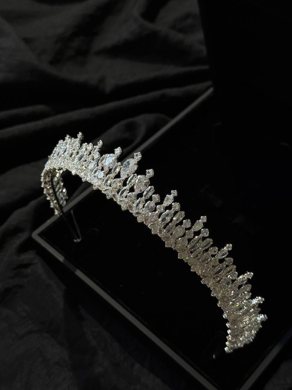 This tiara features a modern minimalist pattern inspired by royal architecture — slim peaks with intricate zircon detailing that add sparkle without overpowering your look. Ideal for modern brides, evening parties, and engagement ceremonies.