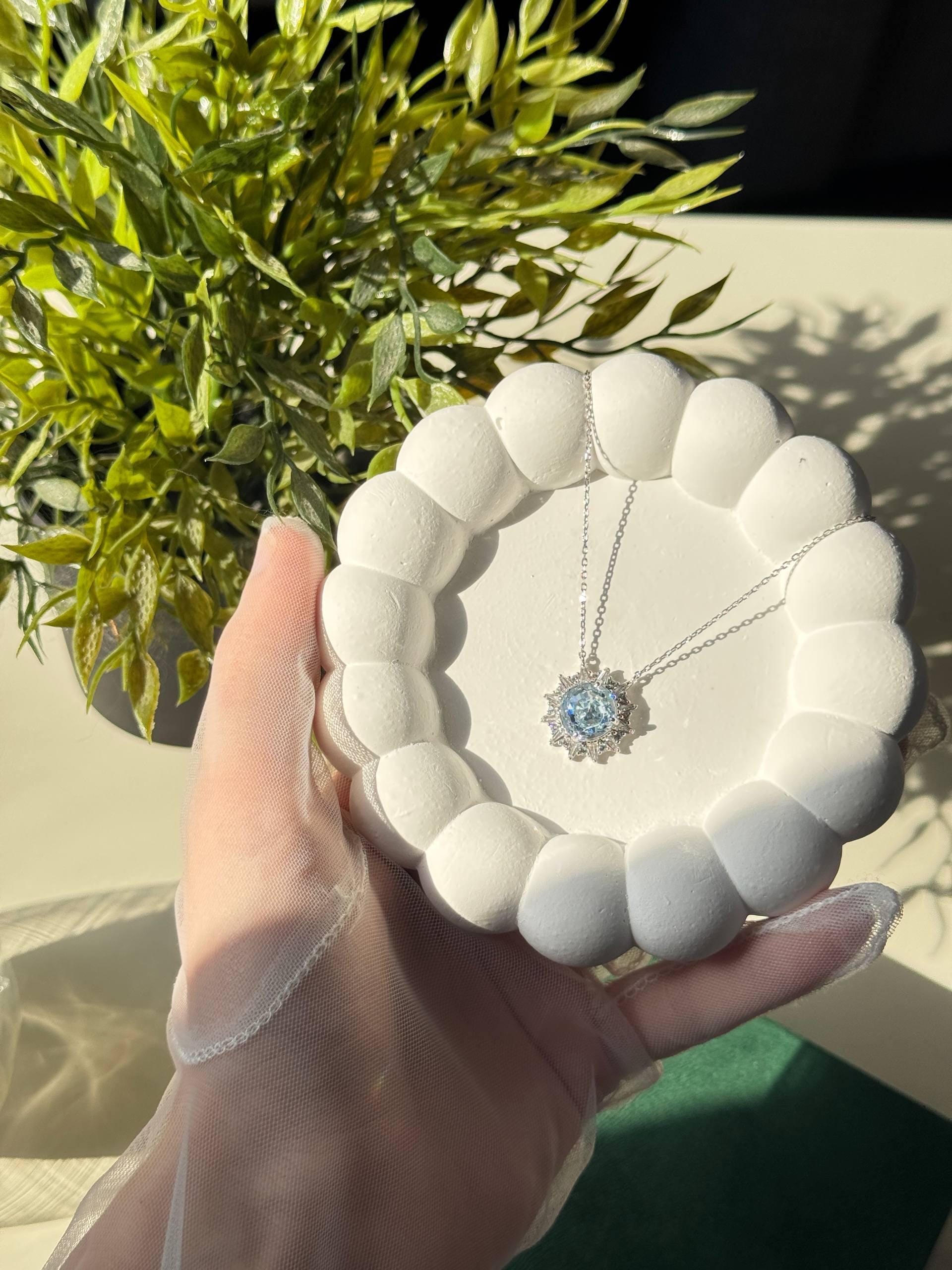 Our jewelry is plated with premium rhodium, ensuring long-lasting shine and resistance to water, sweat, and perfume.