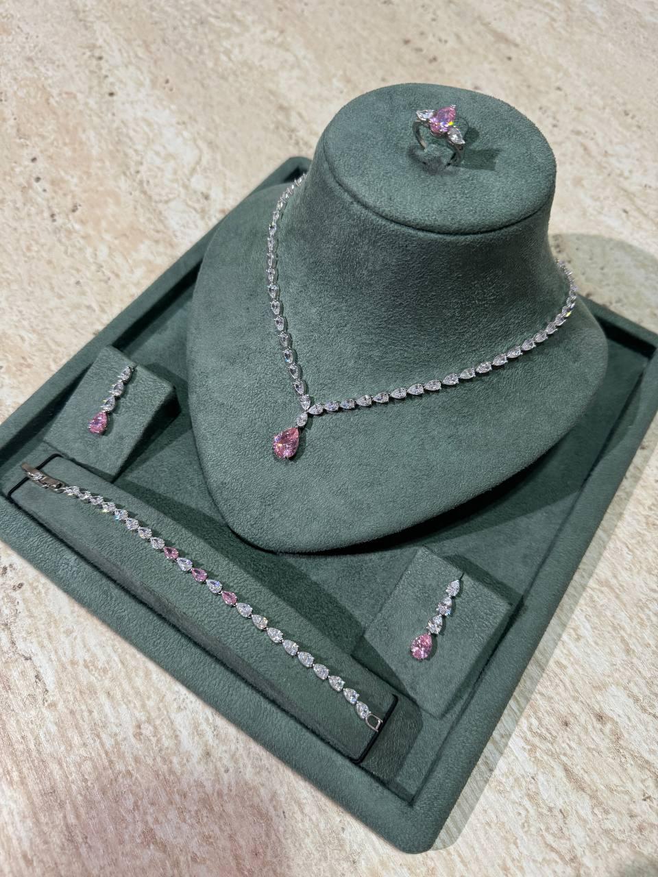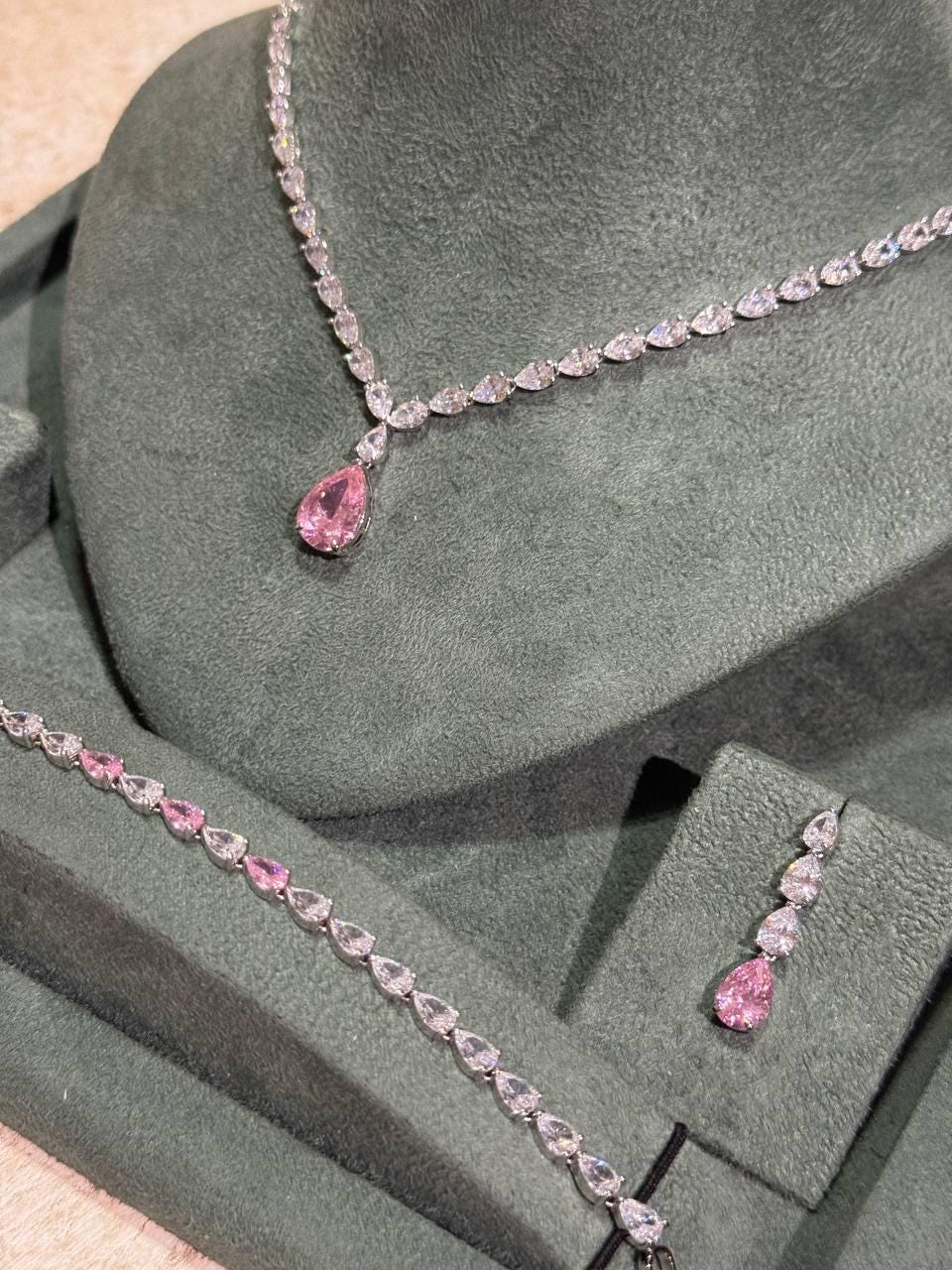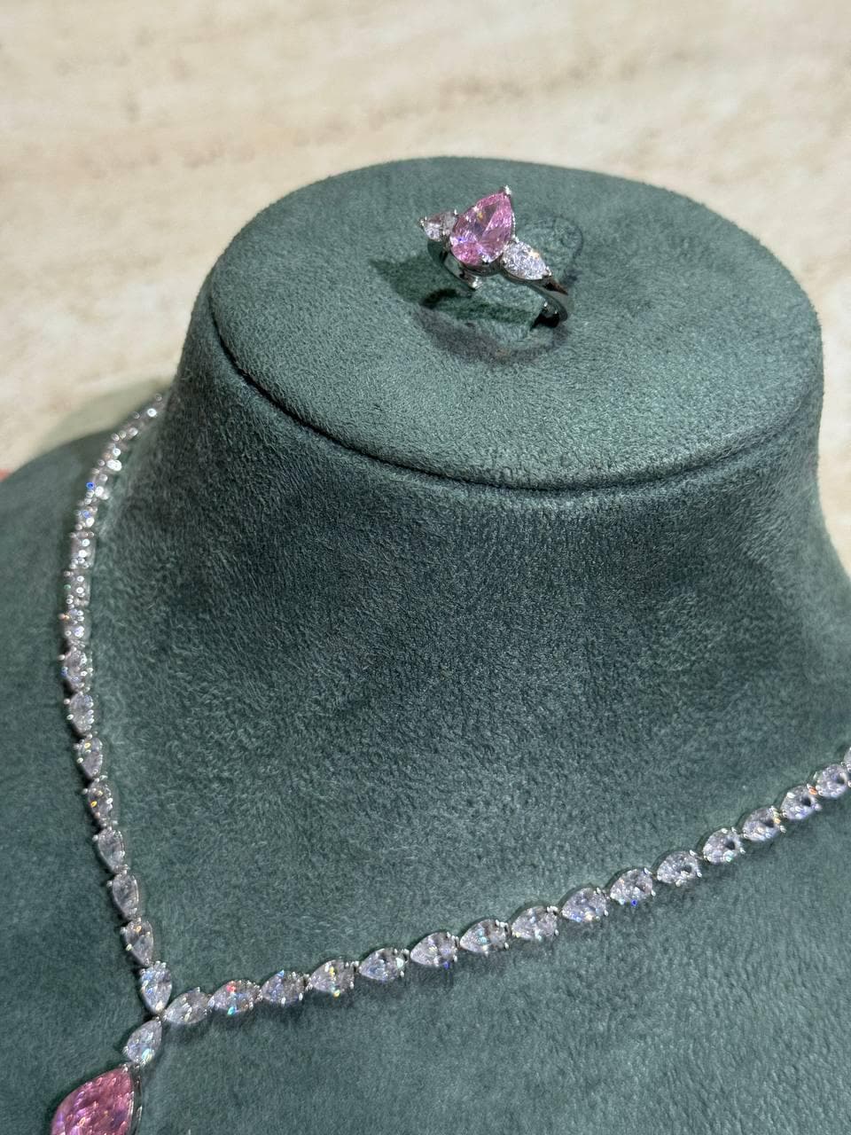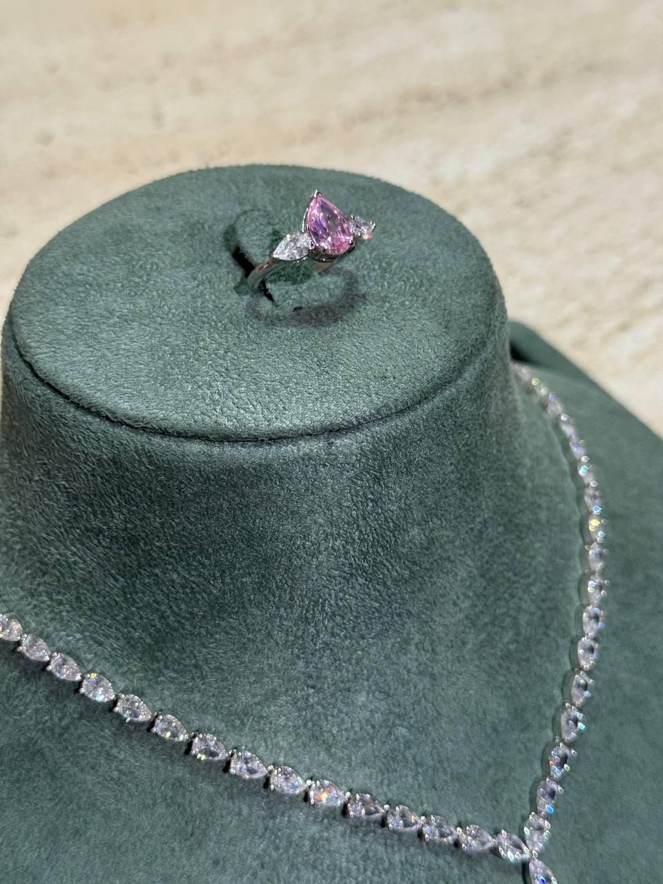 This stunning Pink Pear Cut Jewelry Set is designed for the woman who loves timeless sparkle with a touch of color. Each stone is expertly hand-set with Swiss-cut cubic zirconia, creating a brilliance that rivals real diamonds — with a unique pink centerpiece that adds warmth, femininity, and luxury to every moment.