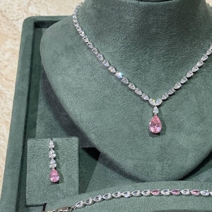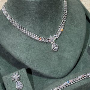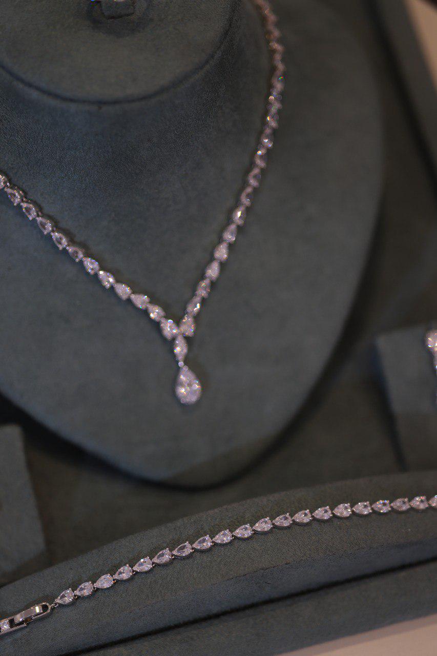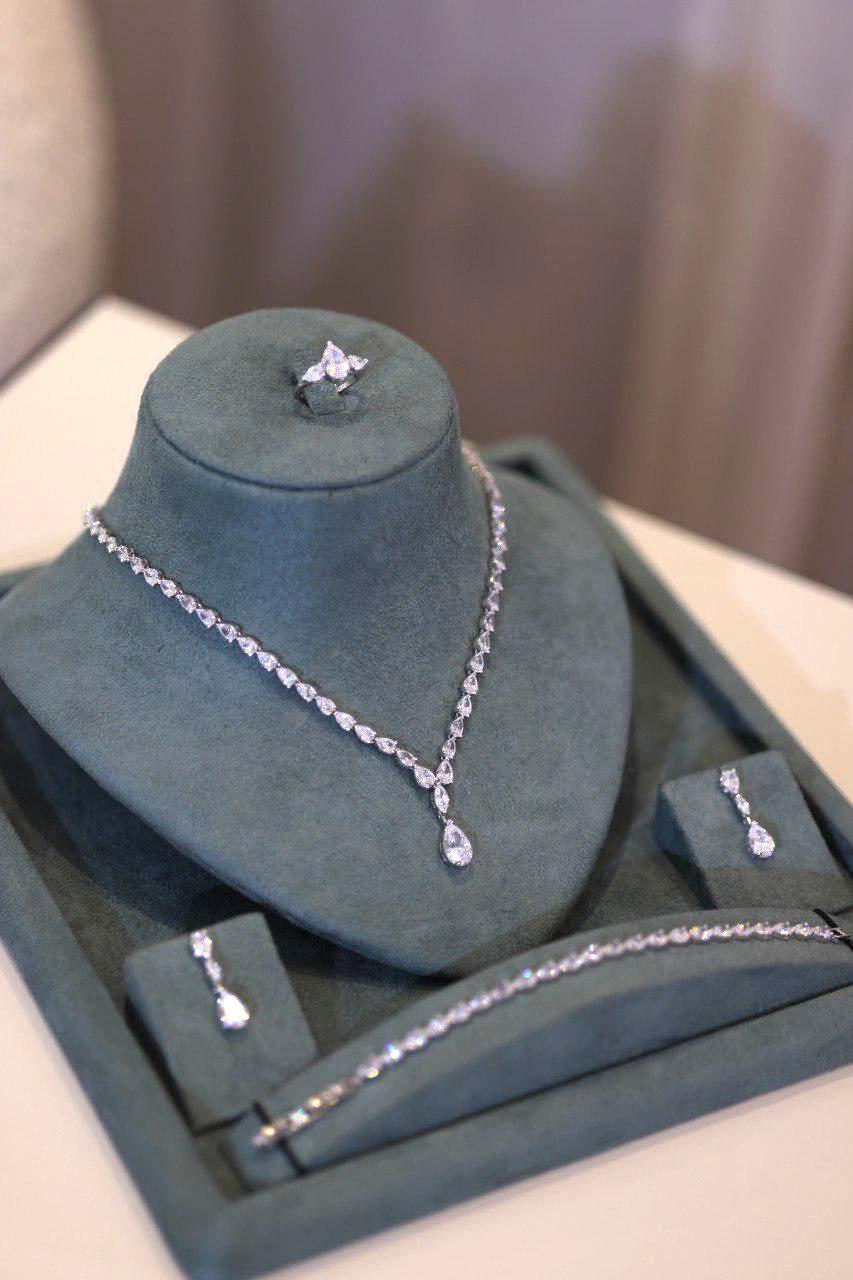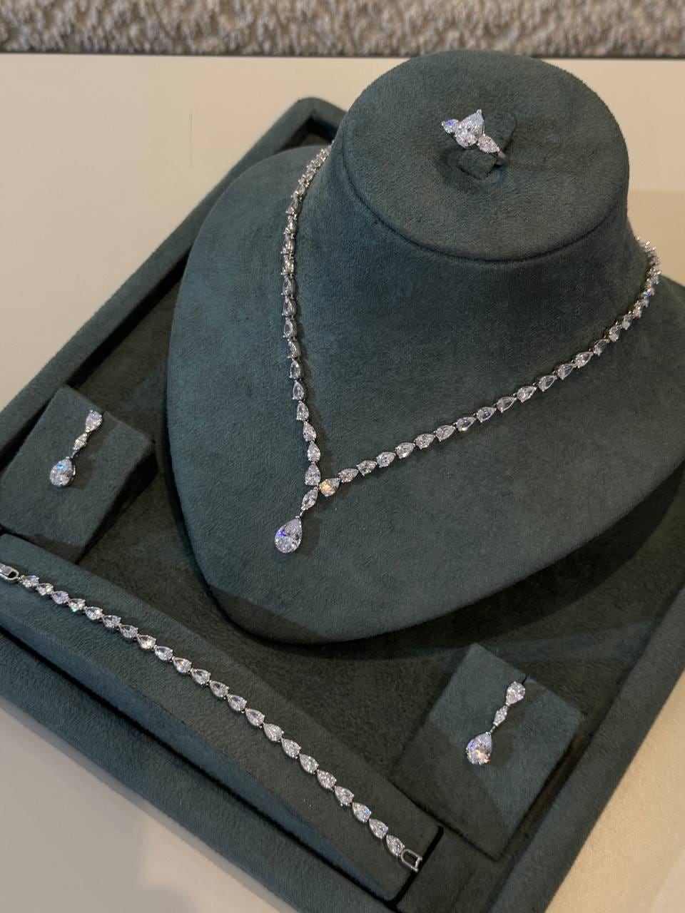 This luxurious pear-drop bridal jewelry set is crafted for the woman who wants a timeless, elegant, and unforgettable sparkle on her big day. Each piece features a flawless row of pear-cut AAAA zircon stones that shimmer with a diamond-like brilliance from every angle.