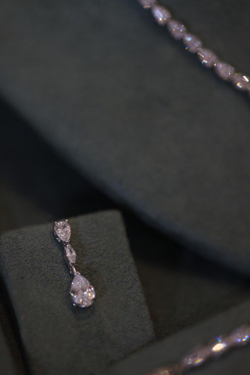 The bracelet completes the look with a continuous line of pear-cut brilliance, creating a seamless, sparkling flow around the wrist.