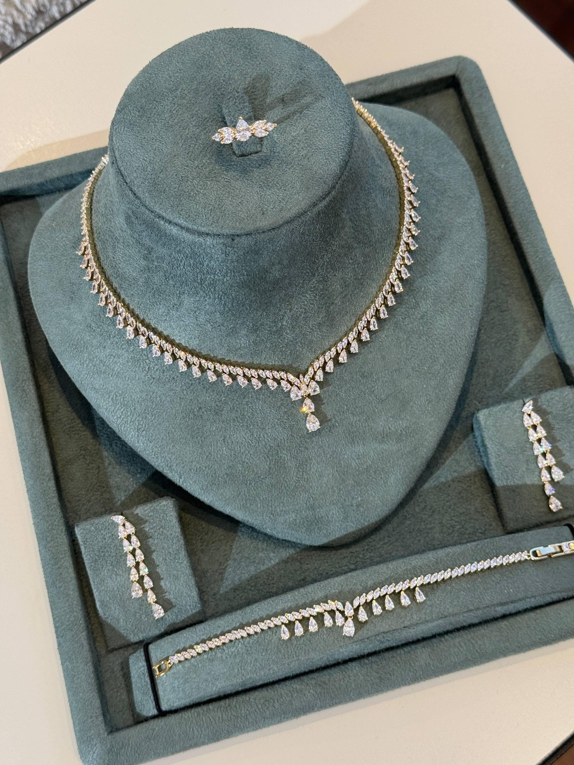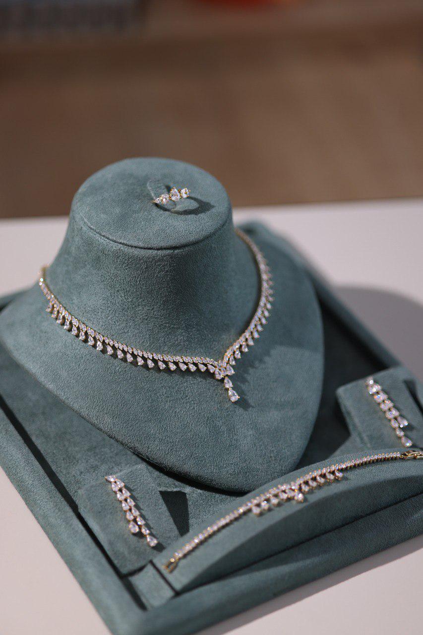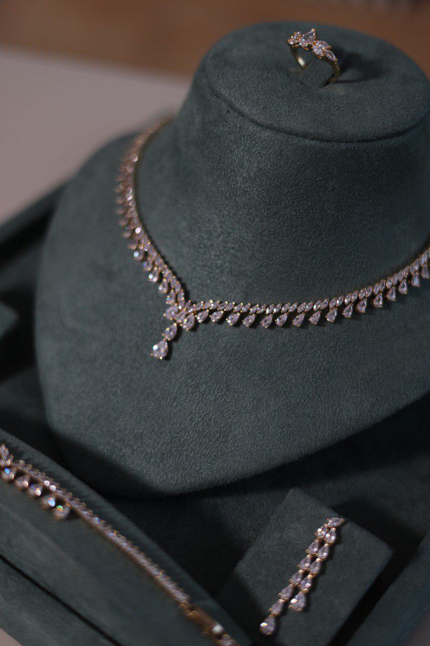 A luxurious 4-piece bridal jewelry set crafted for brides who want a radiant, diamond-like sparkle without limits.