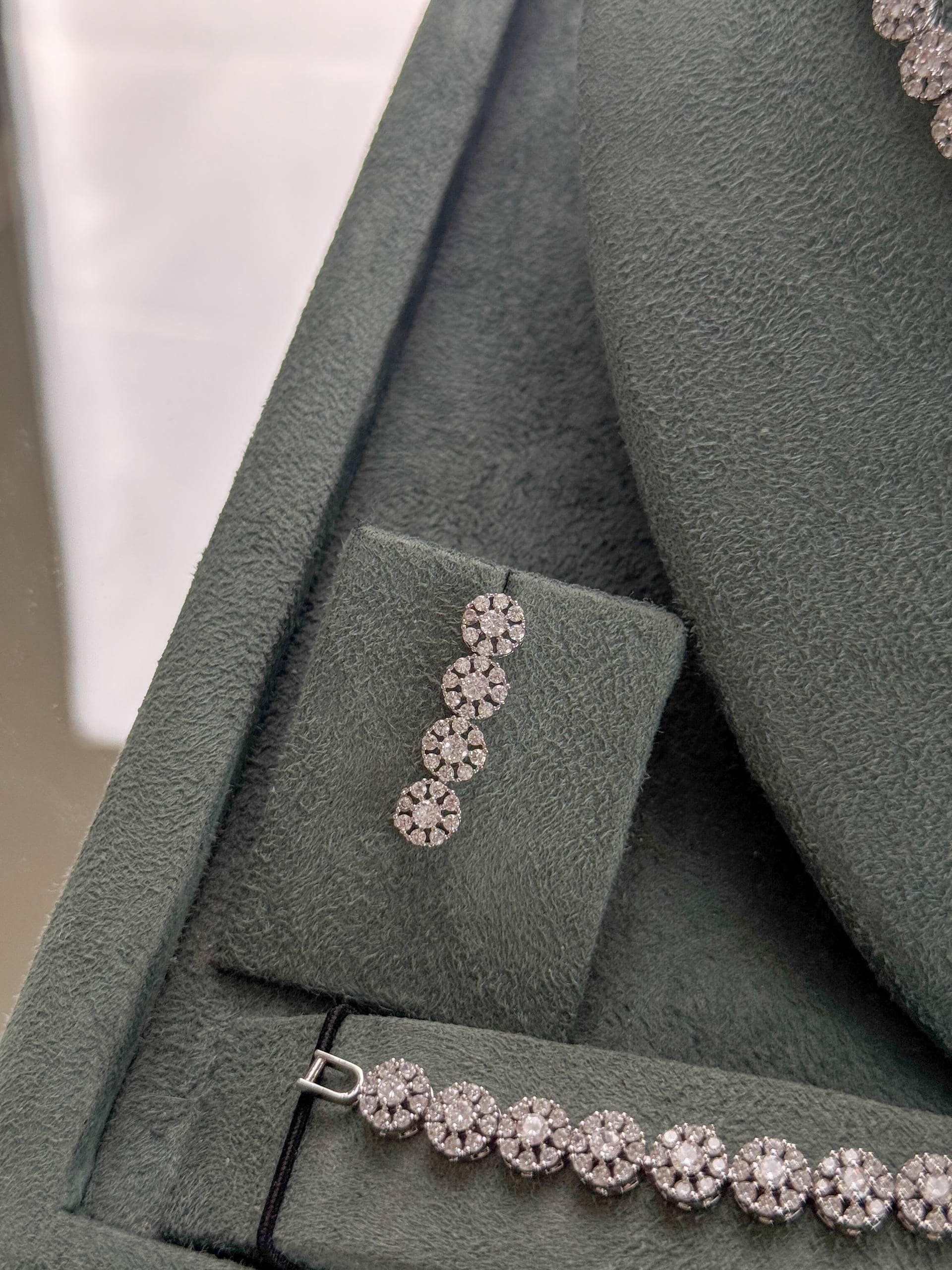 Our jewelry is plated with premium rhodium, ensuring long-lasting shine and resistance to water, sweat, and perfume.