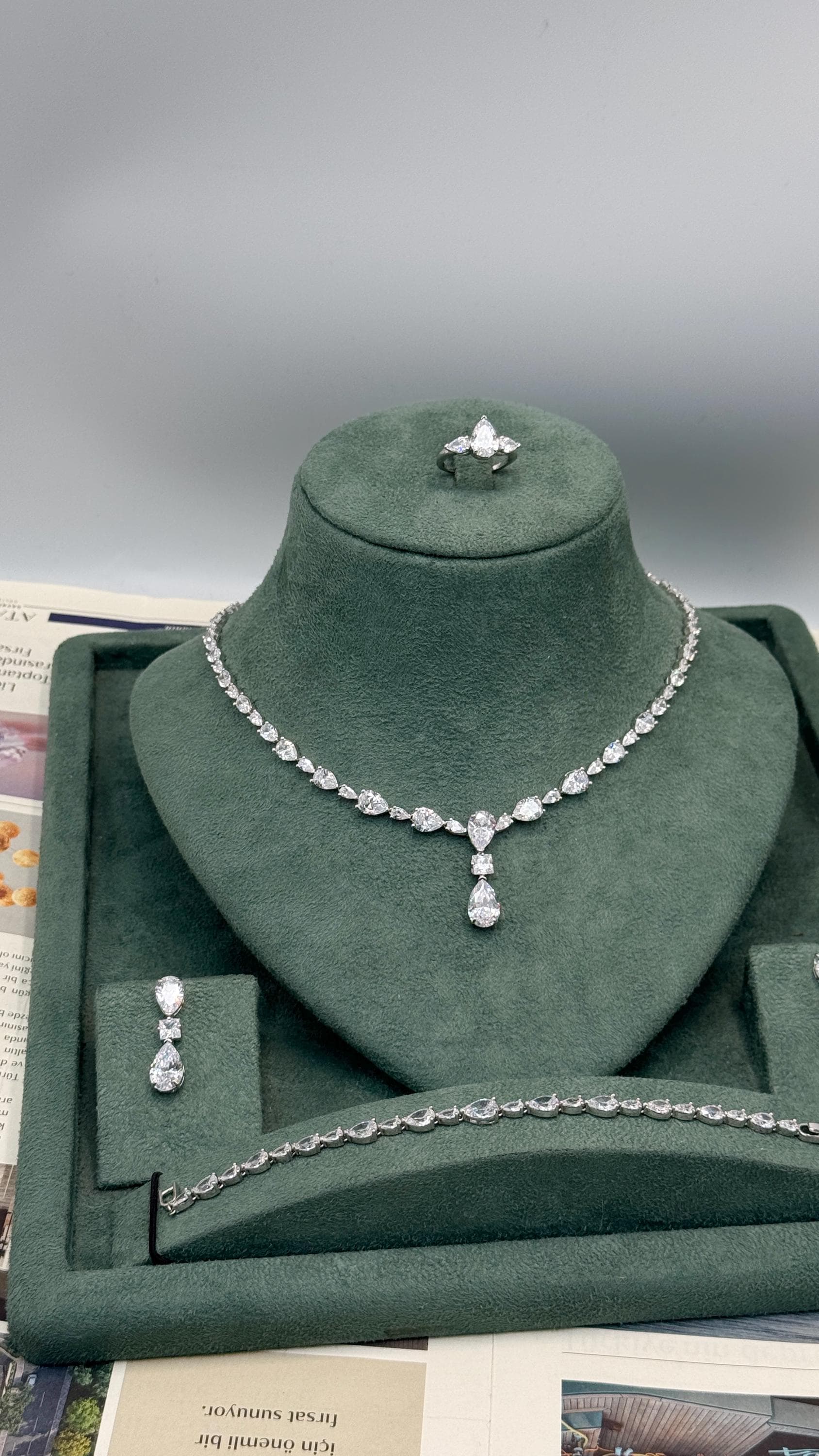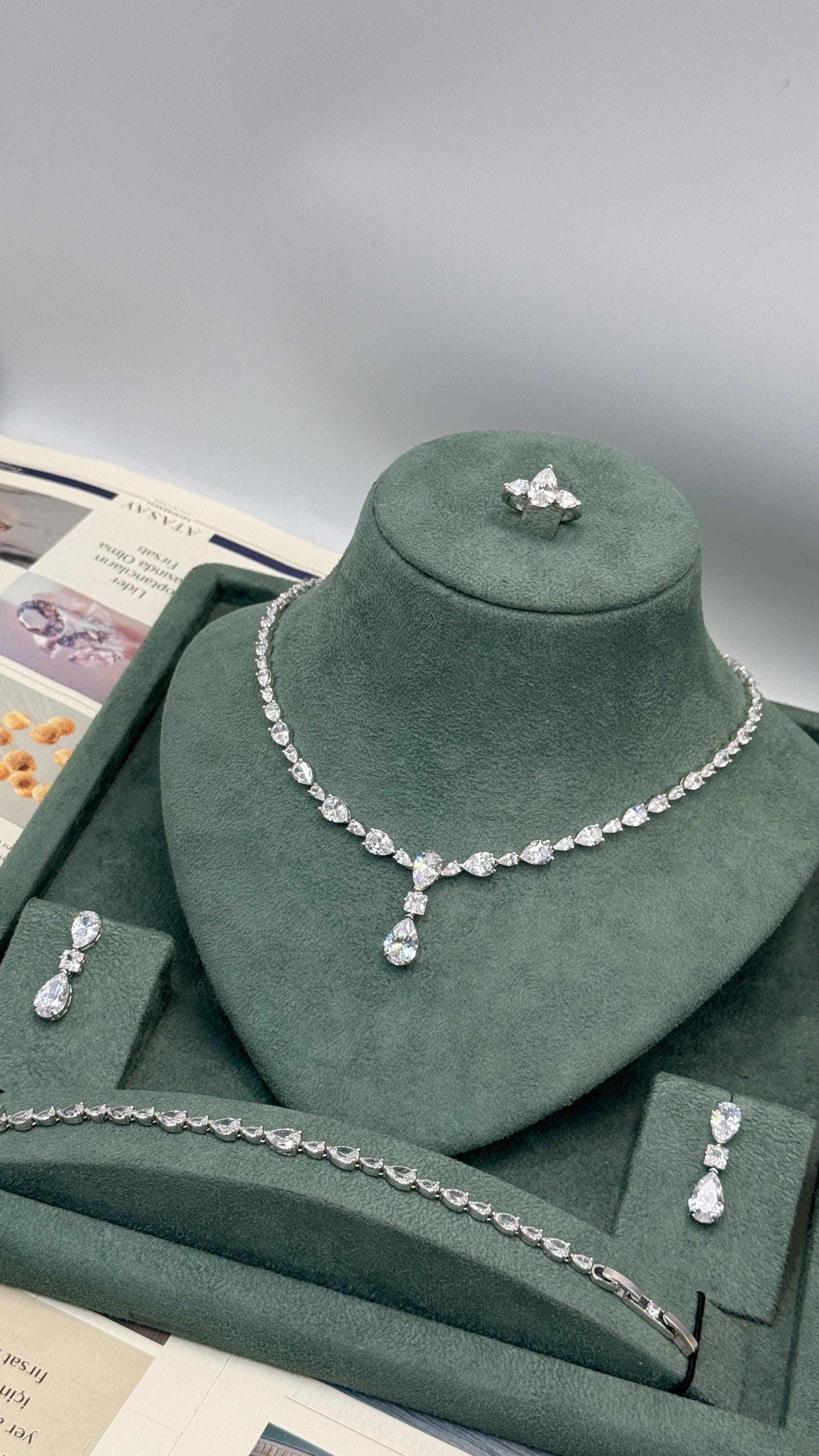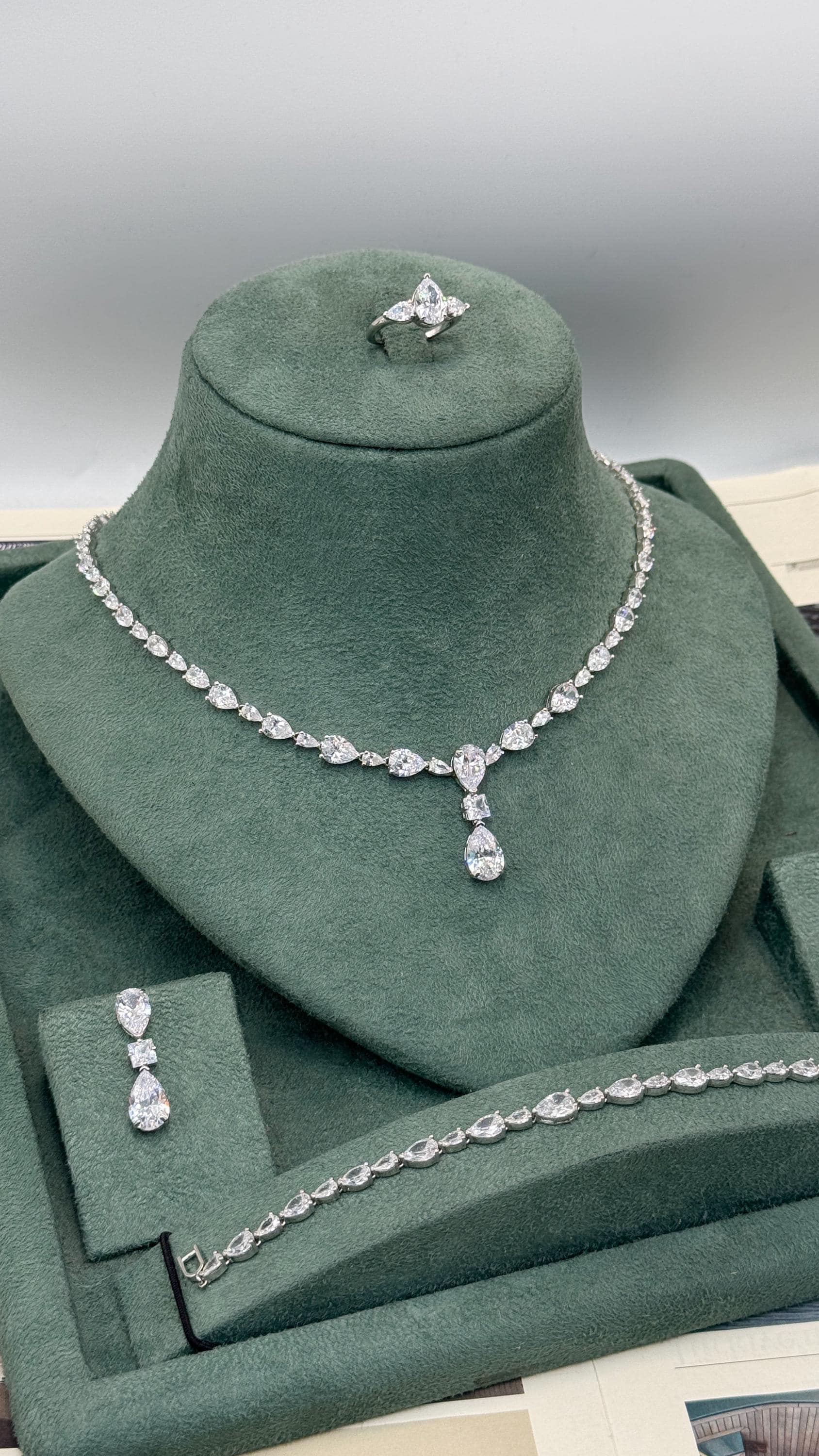 –💍 Make your wedding day unforgettable with this elegant pear-cut bridal jewelry set, designed to reflect timeless beauty and refined sparkle.